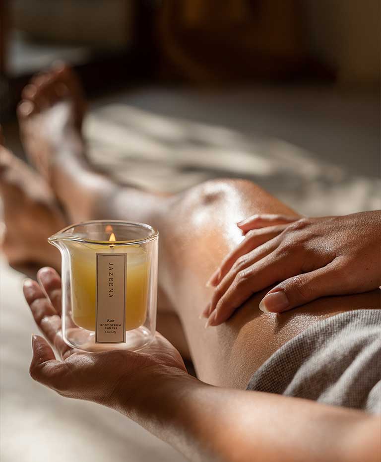 With our warm serum treatment, you’ll be taken to a distant retreat, giving you the space to care for your mind and body. Lighting the Body Serum Candle ignites a time of mindfulness and intention so that you can feel re-energized. Pouring the warm serum on your skin gives you a silkiness and glow making you feel confident and irresistible.