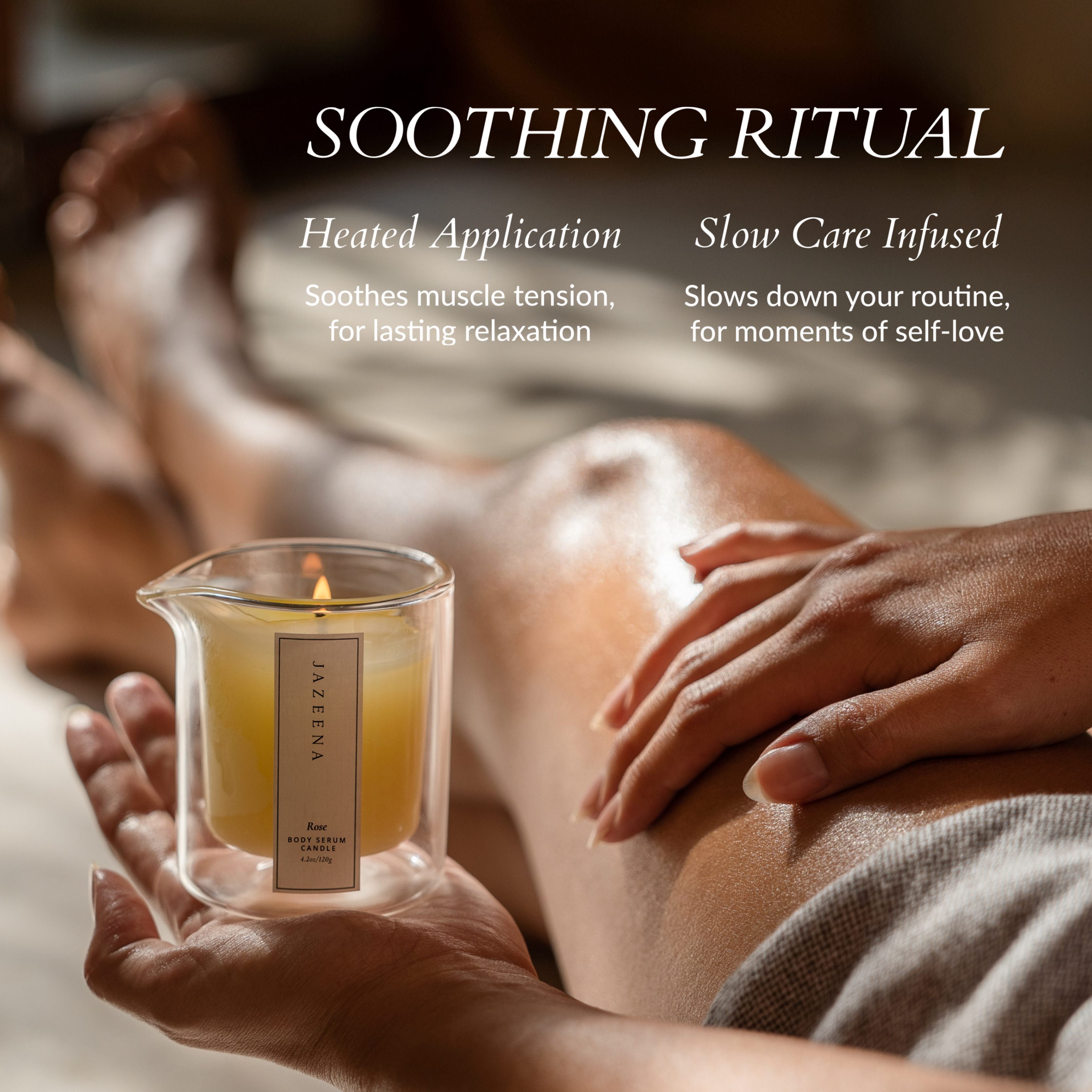 The three 4.2 oz Body Serum Candles last ~18 months depending on use.
