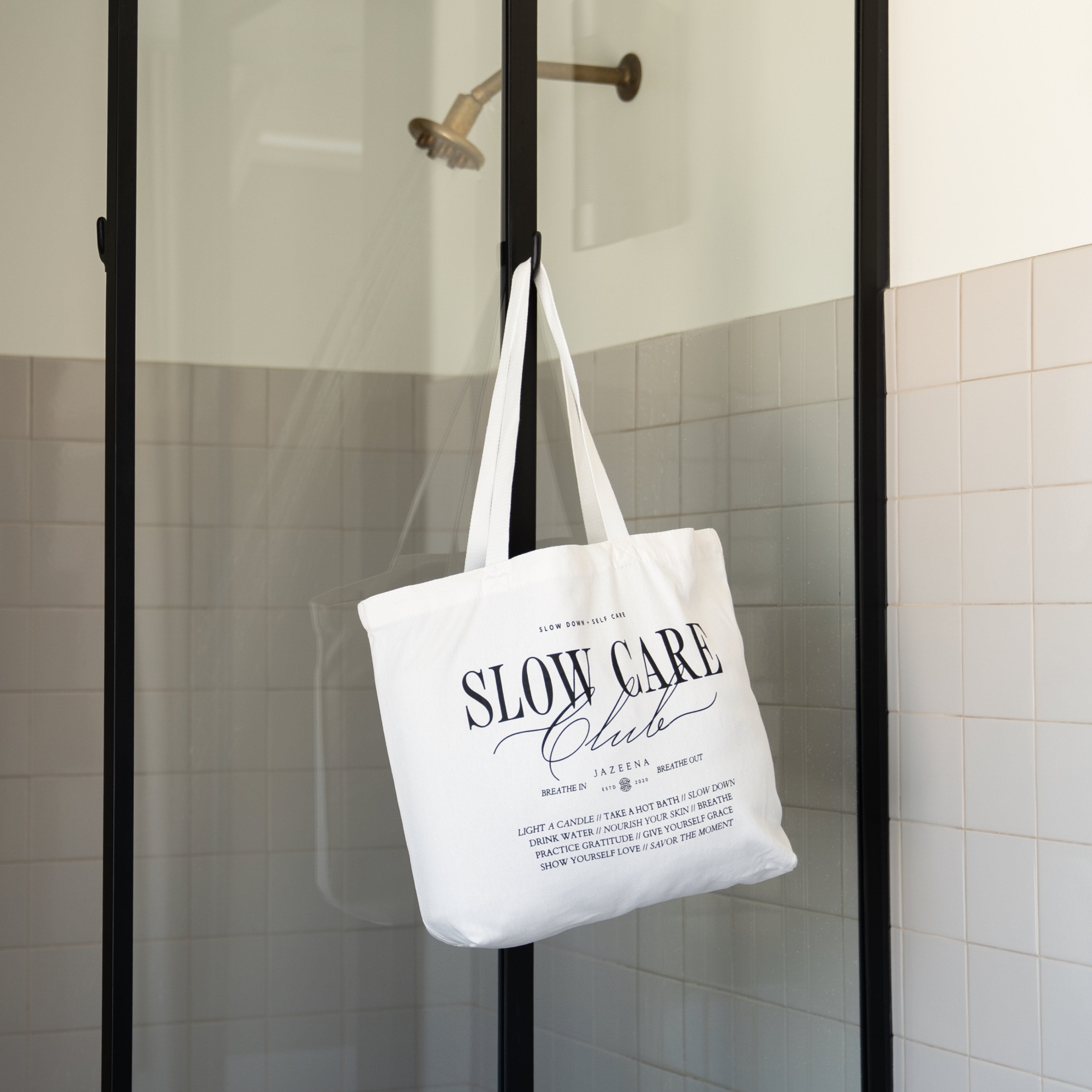 Designed for your everyday essentials, our Slow Care Tote is lightweight, versatile, and foldable. Made from 100% natural cotton, it’s a sustainable companion for a mindful lifestyle.