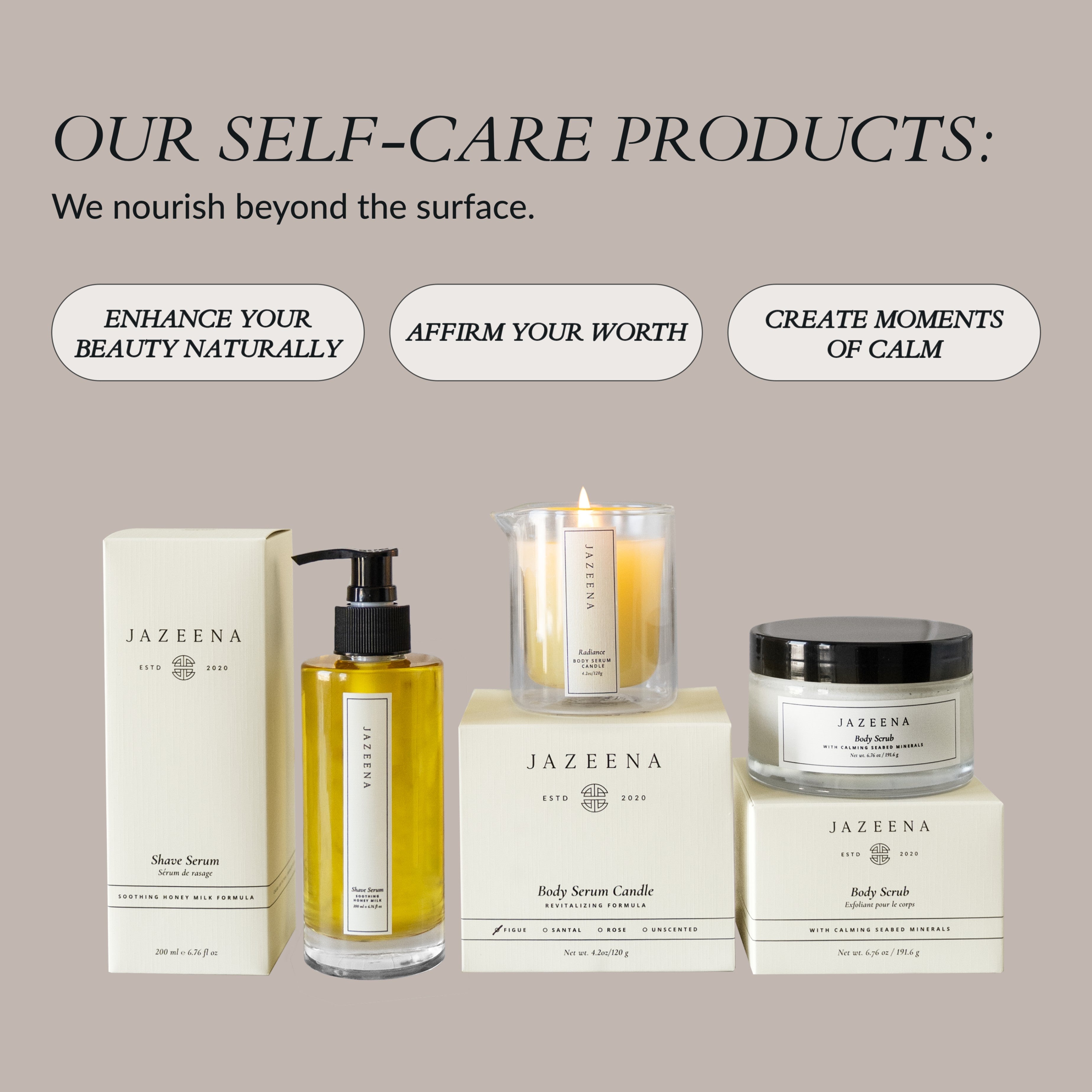 We believe in the power of slow, intentional self-care—and we stand behind every Jazeena product with our 100% satisfaction guarantee.